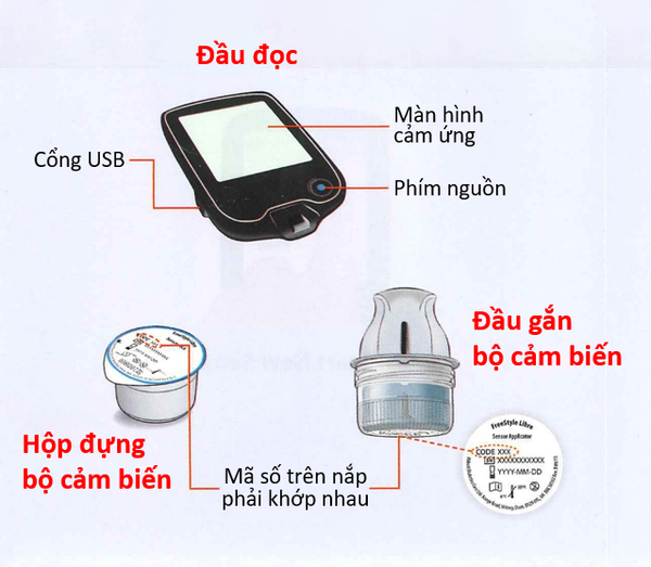 Đầu đọc máy đo đường huyết nhanh FreeStyle Libre sử dụng với bộ cảm biến FreeStyle Libre, giúp dễ dàng kiểm tra nồng độ đường huyết bằng cách sử dụng đầu đọc quét lên cảm biến được gắn cố định ở mặt sau của cánh tay trên, hạn chế trích máu đầu ngón tay nhiều lần để đo.